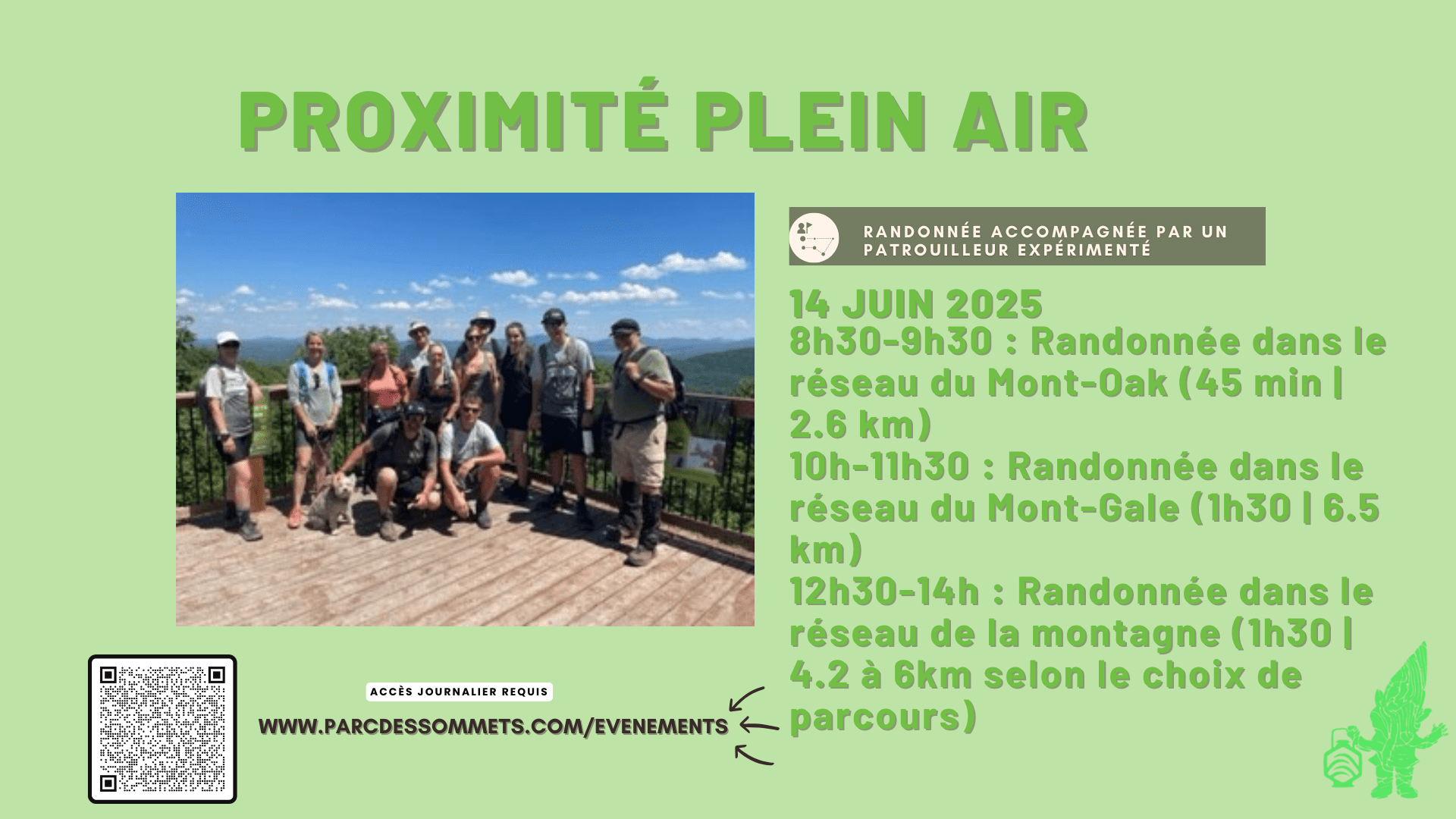 🔸8h30-9h30 : Randonnée au Mont-Oak (45 min | 2.6 km)